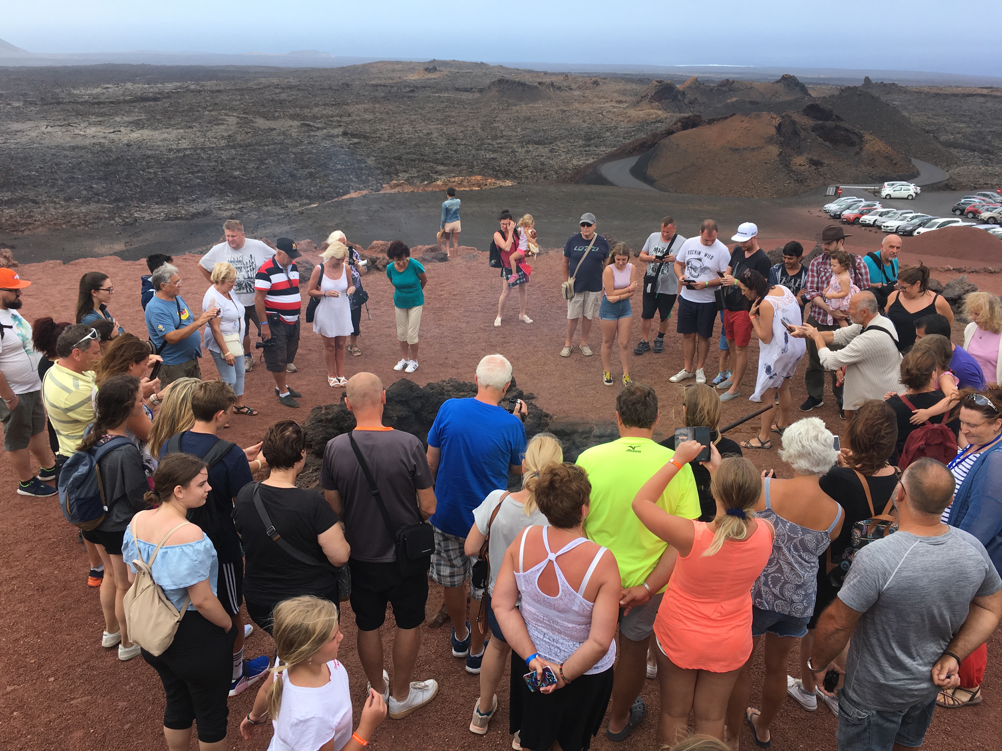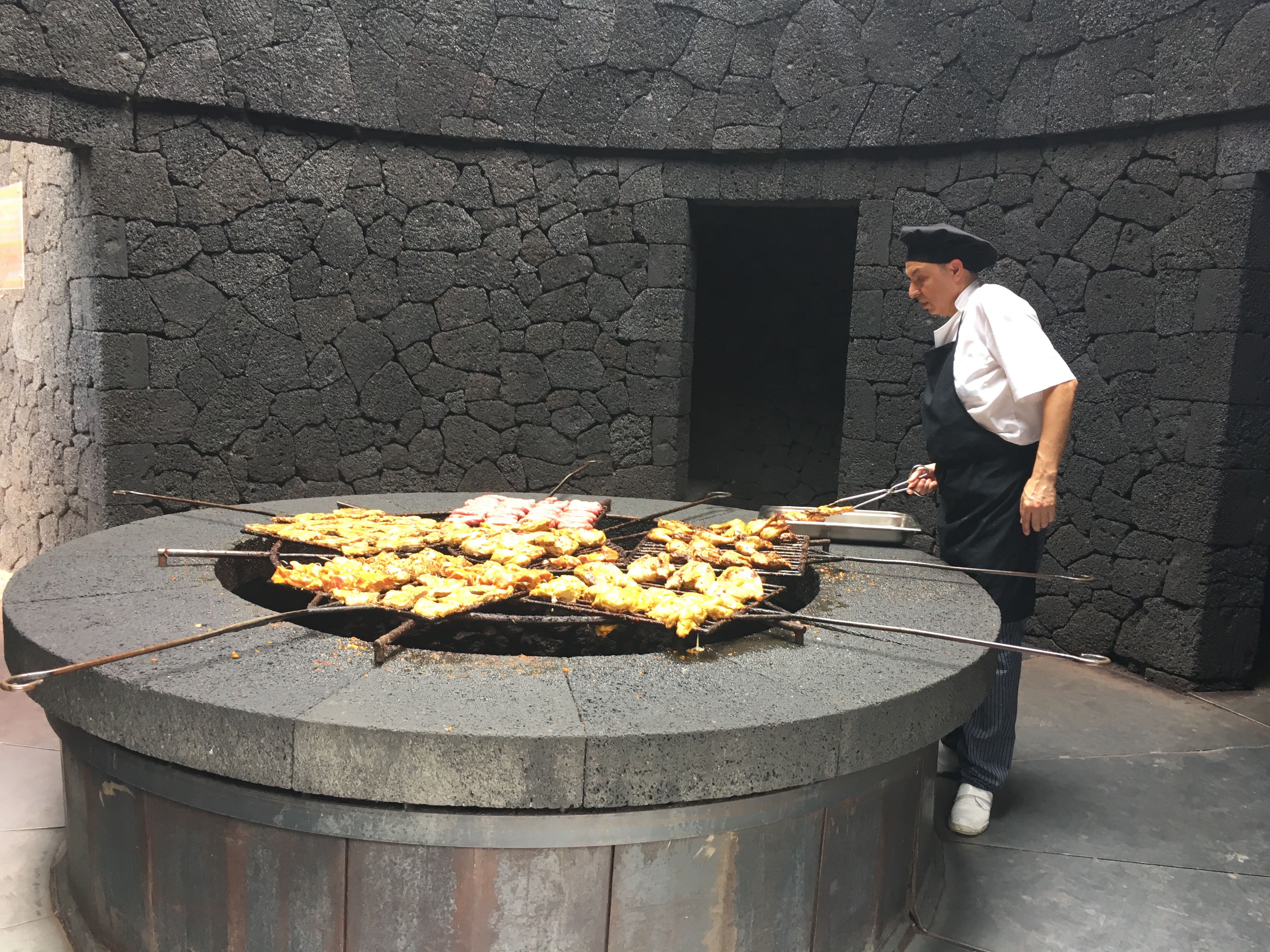 În Parcul Național Timanfaya am fost ca picați pe lună, peisajul e… alt cuvânt, decât cel mai folosit pentru a-l descrie, nu găsesc: selenar. Arid. Fără viață. Lavă întărită, se văd straturile ei, urmare a erupțiilor vulcanice masive din 1730, când 30 de cratere au izbucnit și-au îngropat în lavă o treime din insulă. Tot aici e și singurul vulcan activ – Timanfaya.