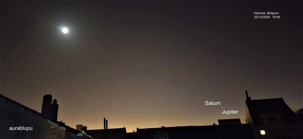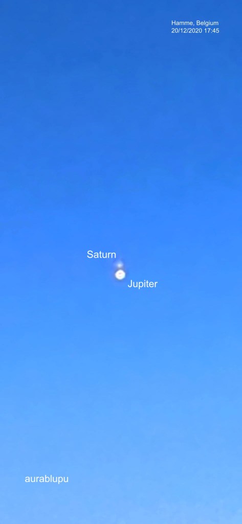 Mâine e o zi mare. Dar seara de azi a fost un regal. Terasa și bolta cerului mi-a oferit, iar, o bucurie, i-am putut vedea pe „greii” cerului foarte aproape, înaintea marii conjuncții de mâine, chiar și inelele lui Saturn iar pe Jupiter împreună cu cele patru luni ale lui, Io, Ganymede, Callisto și Europa.