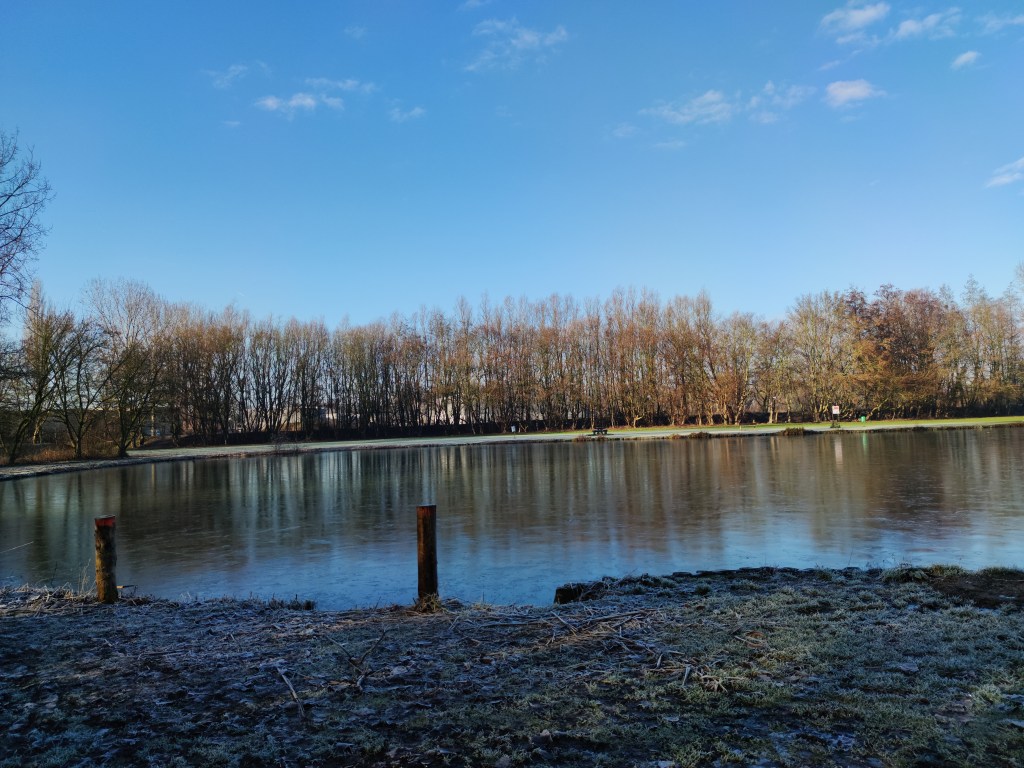 -2 grade, totul alb, feeric, aerul respirabil, umezeală ioc, în sfârșit am putut intra în pădure, către baltă, noroiul era înghețat. Știți că nu-s mare fan al iernii, dar decât ca ieri, +2 grade, mohorât, cu ploaie, noroi, umezeală și miros de mucegai, mai bine -2 grade și înghețat peste tot, mai mor și din microbi.