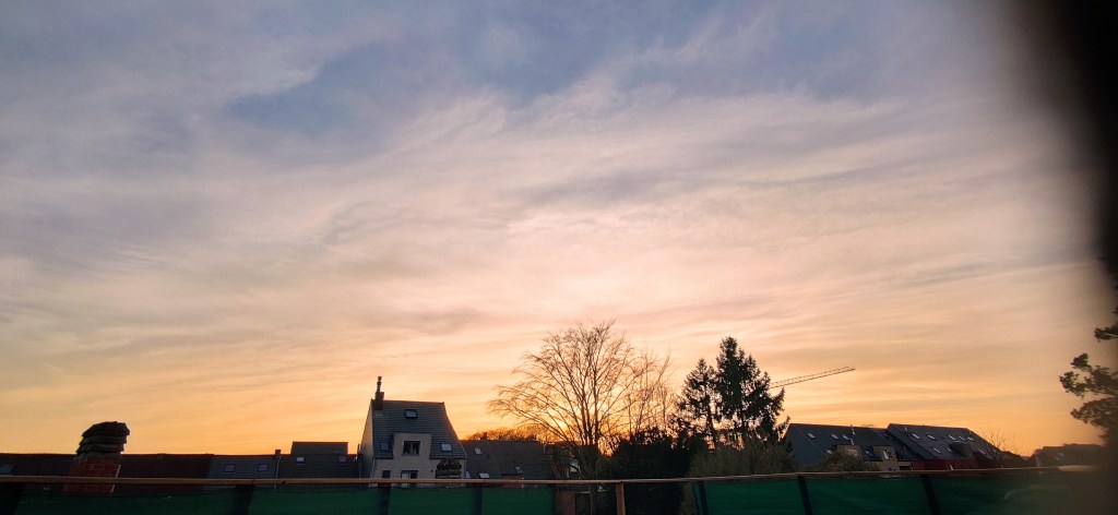 După o zi lungă, primul apus de pe terasă, la 18 grade, cu ghemotocul meu negru la piept, cu norii împrăștiați deasupra mea, în adierea unui vânt primăvăratic îmi găsesc liniștea. Suspin adânc și zâmbesc când suspinul meu se aude la unison cu cel al lui Max, de satisfacție că s-a întors „mămicuța” lui. Mă privește cu ochii ca două mărgele, plini de reproș, că iar am fost plecată o zi întreagă și l-am părăsit. Savurăm momentul. Ne bucurăm cuminte, fiecare de prezența celuilalt. Îmi linge mâna care-l mângâie încet, cu limbuța lui roz, caldă, de parcă-mi zice: „Hai, că te-am iertat!”. Cerul își schimbă rapid culorile, iar în ultimele momente, la orizont, când soarele dispare, apare, surprinzător, culoarea verde. Am mai văzut asta de câteva ori, și de fiecare dată am crezut că doar mi s-a părut. Poate și de data asta, cine știe? Se răcorește brusc. Intrăm în casă. A mai trecut o zi.