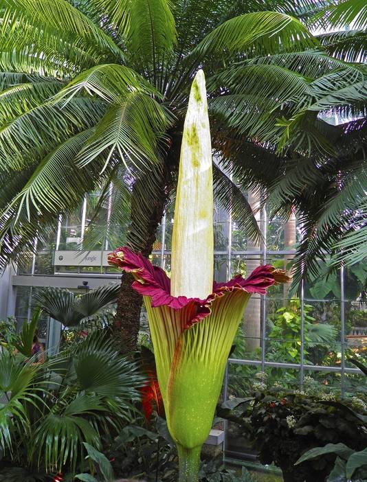Un exemplar din cea mai mare floare din lume ”reuzenaronskelk” – Titan Aurum sau „floarea-cadavru”, cum mai este cunoscută din cauza mirosului pestilenţial pe care îl emană, a înflorit în noaptea de 1 august 2021 la grădina botanică din Meise, nordul Belgiei.