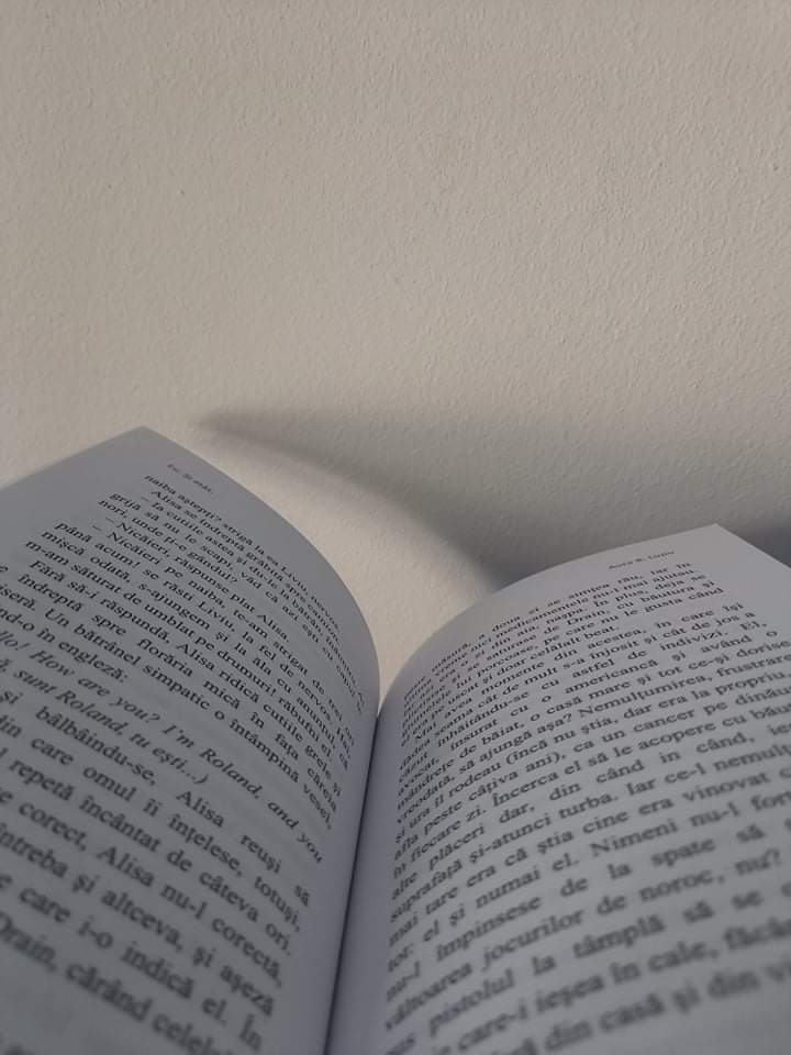 Mă bucură fiecare cuvânt, poză, feedback – cum se spune mai modern – primit de la voi. Să nu credeți că nu contează, ba contează, v-am mai zis. Voi sunteți imboldul ăla care uneori lipsește, mesajele și pozele primite de la voi sunt exact ceea ce-mi trebuie uneori, când nici io, ca tot omul, n-am parcă niciun chef, sunteți motivația necesară să continui, să nu mă las. Am momente, zile când mă îndoiesc de toate și nimic, când nu mai găsesc niciun sens. Când stau cu pagina goală-n față și cuvintele nu vin. Și-aud telefonul cum vibrează iar când mă uit în el, găsesc câte-un mesaj ce mă emoționează și-mi dă curaj. Cuvintele încep apoi să curgă, de la sine. Azi am primit și câteva poze, cu romanul meu, mi-au plăcut atât de mult! Uitați-vă și voi, așa-i că-s faine?