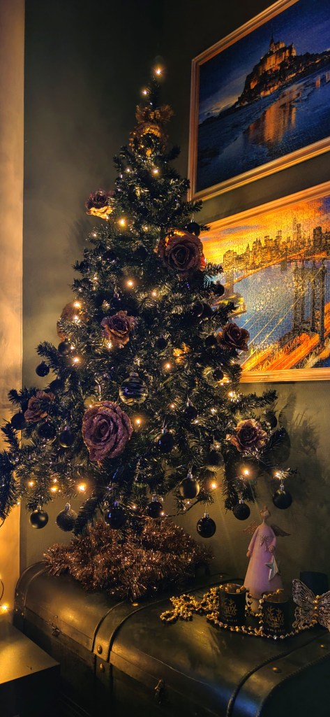 🖤 N-am putut să nu împodobesc brad. Mai sobru, mai neobișnuit, dar l-am făcut, pentru că oricum Crăciunul vine, cu tot cu supărări, cu doliu, și-i totuși cea mai frumoasă dintre sărbători. Ce-i drept nici pe-afară nu se simte defel că-i decembrie și că sărbătorile se-apropie, plouă, iar ornamente și luminițe n-am prea văzut. Când m-am întors însă cu Max de-afară și mi-am văzut prin geam bradul luminând și coronița de pe ușă, am zâmbit. E decembrie. Vin sărbătorile. Chiar dacă anul ăsta am decorat un brad mai neobișnuit, luminițele sunt calde, împrăștie lumină blândă și-aduc un strop, un strop de bucurie, de liniște și tihnă. 🖤