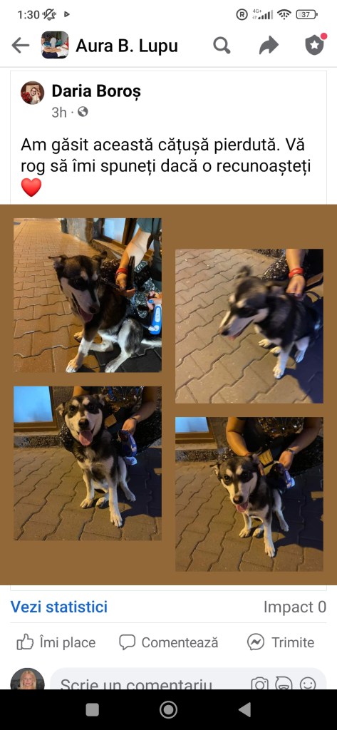 Fără peripeții vacanța mea nu se poate. Cu toată agitația, stresul și emoțiile generate, măcar sunt împăcată că am făcut ceva. N-am stat pasivă, dând din umeri, zicând că-s mulți câini în situația asta, că oricum nu-i pot salva pe toți, așa că n-are rost. Știu că-i bătaie de cap, că-i greu de găsit soluții, că-i mult mai simplu și ușor să pleci, fără să te uiți înapoi. Dar io-s împăcată că măcar un suflețel a primit o șanșă. Și ăsta-i poate doar un fir de nisip într-un deșert și nu schimbă situația în bine, dar contează pentru suflețelul ăla și pentru sufletul meu. Am mers iar pe dig la plimbare cu Max și-a apărut un cățel ce s-a ținut după noi. Ieri nu l-am văzut, dar știam că-n zona aia mereu erau câini vagabonzi, ăsta însă nu prea părea, era un fel de husky, foarte prietenos și frumușel foc. După o vreme am văzut că era femelă, am și mângâiat-o, Max până la urmă n-a mai lătrat-o, iar când să plecăm, a venit după noi până la mașină. Nu m-a lăsat inima s-o las acolo-n stradă, am luat zgarda și lesa lui Max și-am dus-o unde am crezut eu c-o să găsesc cumva o soluție. A venit fără probleme, plus că eu am văzut o urmă de zgardă-n jurul gâtului ei, era, după mine, un cățel pierdut ori părăsit. Cip nu avea, dar vagabond n-avea cum să fie. Am dat anunț pe Facebook, i-am făcut poze, am dat sfoară-n țară, din păcate nimeni n-a revendicat-o. I-am cumpărat mâncare și i-am dat apă, a dormit apoi liniștită, de parcă era a mea de când lumea. În Belgia e simplu, găsești un câine, suni la poliție, ei se ocupă de rest. Aici chiar n-am știut ce să fac. Noroc că s-a oferit cineva s-o ia acasă, dacă nimeni n-o să răspundă anunțurilor, o s-o păstreze el. După miezul nopții am ajuns acasă, dar măcar sunt împăcată că am făcut ce trebuia.