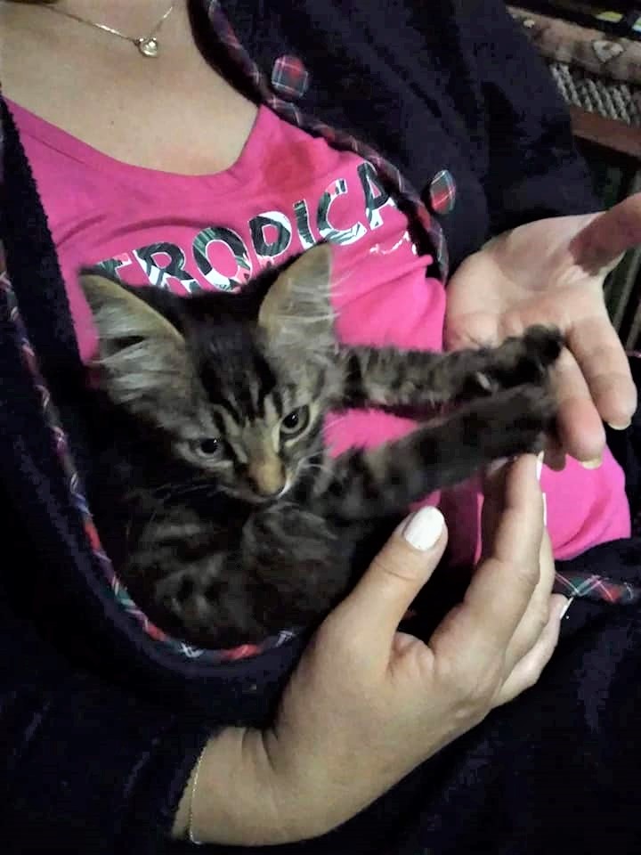 Știți c-am găsit în România un pisoiaș, acum e Bobiță, răsfățatul familiei, a rămas la ai mei. În dimineața când am plecat zici c-a simțit, nici cafeaua nu m-a lăsat s-o beau, a fost musai să-l țin la piept. În ultimă poză, când m-am uitat mai atent, i-am văzut ochișorii. ![]()