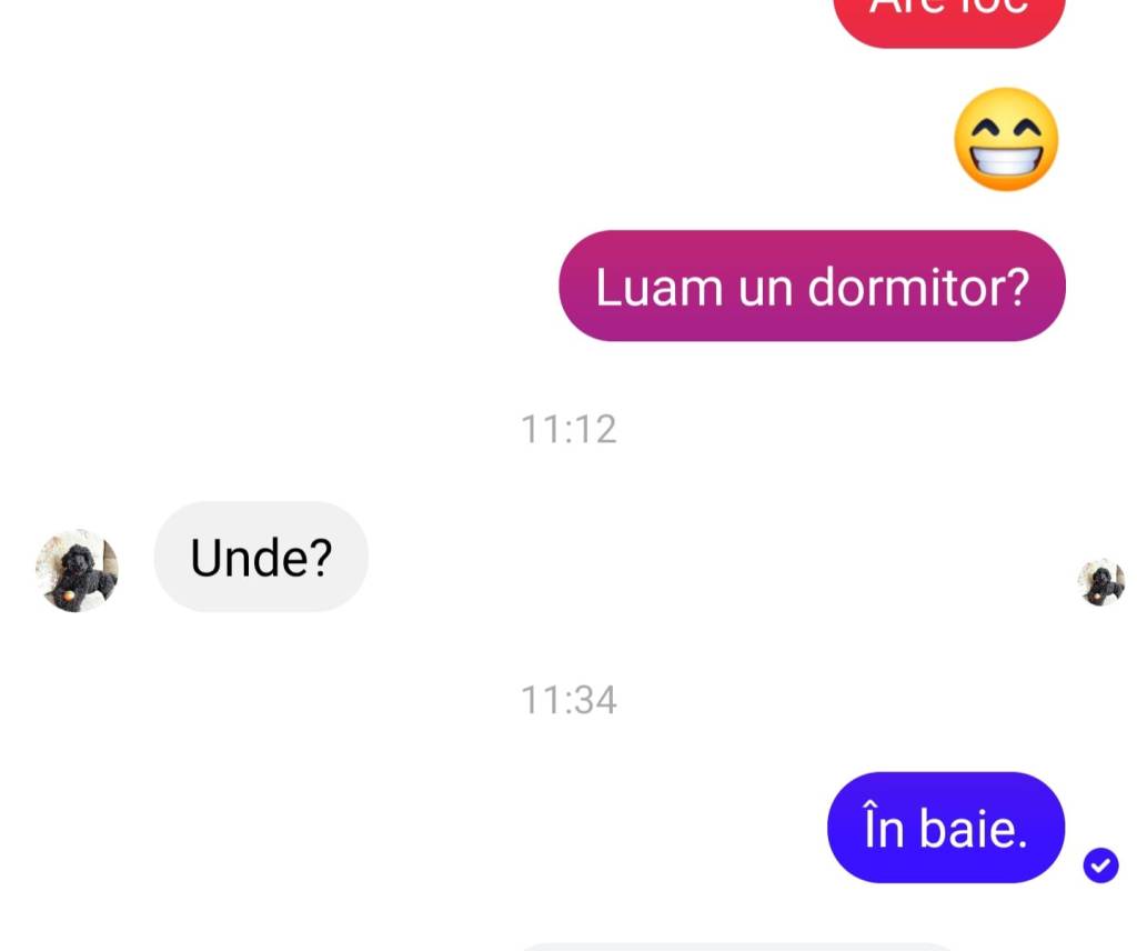 De multe ori mă scol dimineața înțepenită tătă, de numa’ scârțâi și pârâi din încheieturi, în timp ce dumnealui îi proaspăt ca o floricică. Azi-noapte ne-am culcat în pod, avem acolo un pat mai mare, în dormitor n-am mai avut chef să fac patul, eram prea obosită, lăsasem salteaua și așternuturile la aerisit; și-mi trimite azi bărbatu’ mesaj că ce bine-o durnit. Nu prea vrea să dormim acolo, că nu-i place. Și-l întreb, sperând că o să luăm un pat nou, mai mare. Ni ce-mi zice. Apoi cum să-i răspund altfel? ![]()