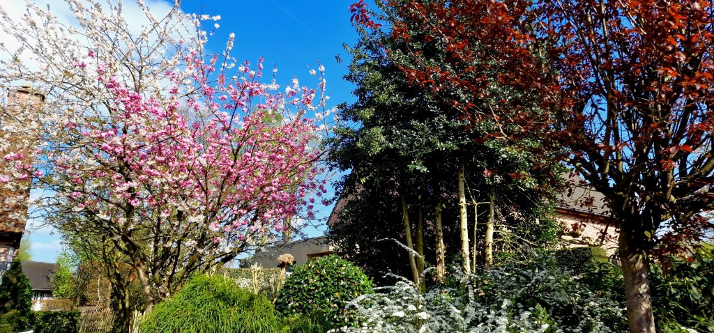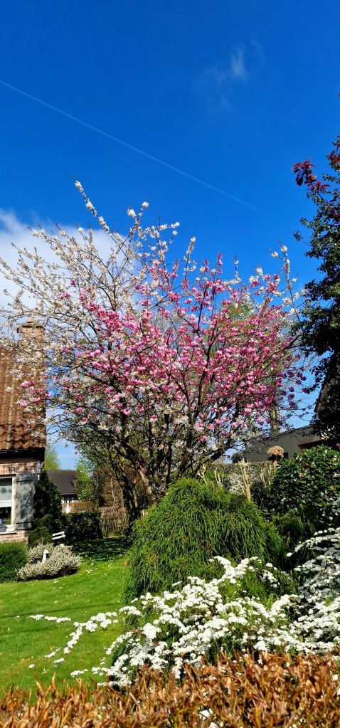 Am o căsuță preferată, pe care o admir, suspinând, de fiecare dată când trec pe lângă ea. E perfectă. Are un farmec rural, aparte, cu obloane albe, cu o potecă pietruită și-o grădină îngrijită, superbă. Acum au înflorit și copacii din fața ei. Doi într-unul – cum ar veni, în aceeași coroană sunt flori și albe, și roz, o minunăție. Azi am oprit să fac poze, nu m-am mai putut abține, prea frumoși sunt. Vremea-i în continuare frumoasă, doar că s-a mai răcit. Sau poate singurătatea mă apasă și mă face să-mi fie frig? Max mă-ntâmpină ca de obicei vesel, febril. Hai, Aura, fii bărbată. Nu te mai smiorcăi. Mai este un pic.
